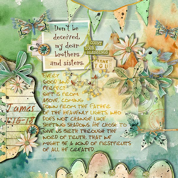 Don’t be deceived, my dear brothers and sisters. Every good and perfect gift is from above, coming down from the Father of the heavenly lights, who does not change like shifting shadows. He chose to give us birth through the word of truth, that we might be a kind of firstfruits of all he created. James 1:16-18