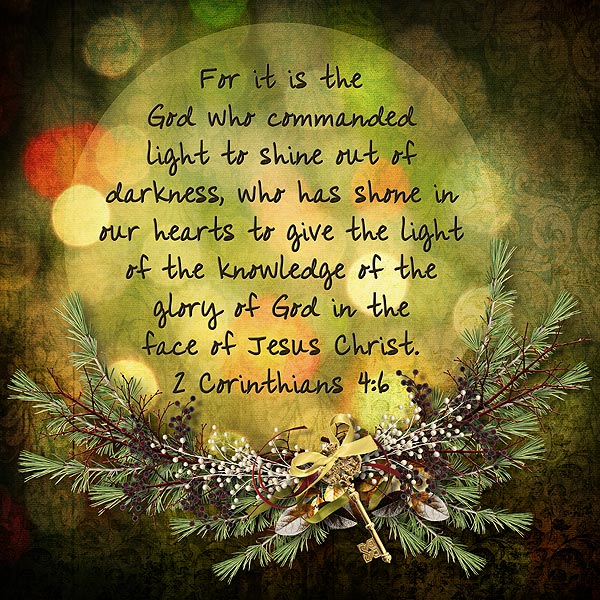 For it is the God who commanded light to shine out of darkness, who has shone in our hearts to give the light of the knowledge of the glory of God in the face of Jesus Christ. 2 Corinthians 4:6