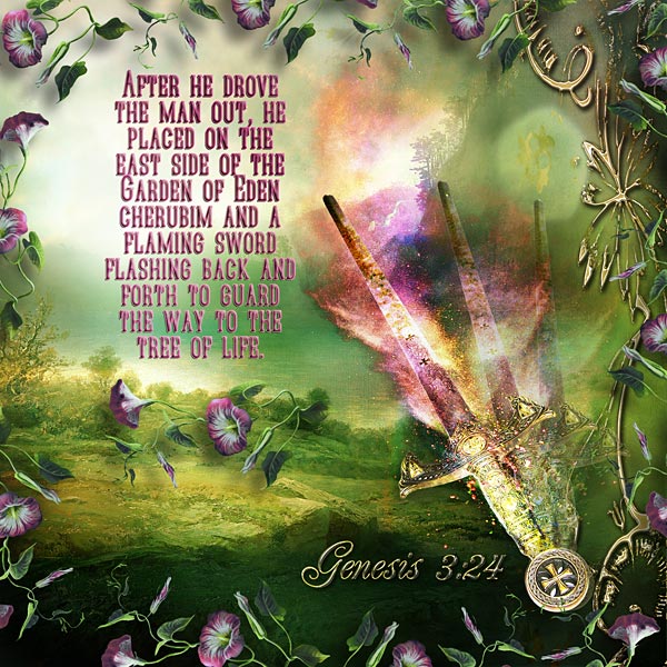 After he drove the man out, he placed on the east side of the Garden of Eden cherubim and a flaming sword flashing back and forth to guard the way to the tree of life. Genesis 3:24