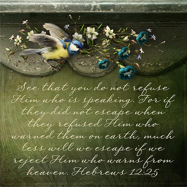 See that you do not refuse Him who is speaking. For if they did not escape when they refused Him who warned them on earth, much less will we escape if we reject Him who warns from heaven. Hebrews 12:25