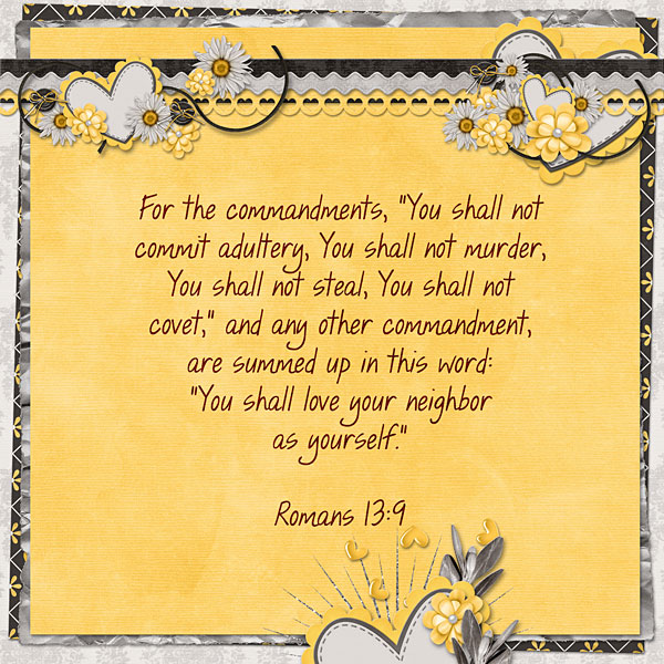 For the commandments, “You shall not commit adultery, You shall not murder, You shall not steal, You shall not covet,” and any other commandment, are summed up in this word: “You shall love your neighbor as yourself.” Romans 13:9