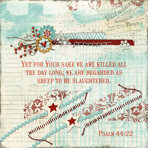 Yet for Your sake we are killed all the day long; we are regarded as sheep to be slaughtered. Psalm 44:22