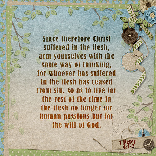 Since therefore Christ suffered in the flesh, arm yourselves with the same way of thinking, for whoever has suffered in the flesh has ceased from sin, so as to live for the rest of the time in the flesh no longer for human passions but for the will of God. 1 Peter 4:1-2
