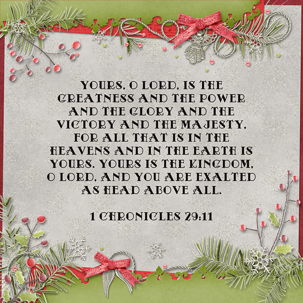 Yours, O Lord, is the greatness and the power and the glory and the victory and the majesty, for all that is in the heavens and in the earth is Yours. Yours is the kingdom, O Lord, and You are exalted as head above all. 1 Chronicles 29:11