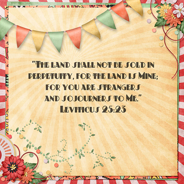 “The land shall not be sold in perpetuity, for the land is Mine; for you are strangers and sojourners to Me.” Leviticus 25:23