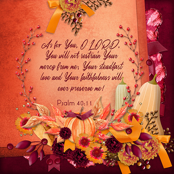 As for You, O LORD, You will not restrain Your mercy from me; Your steadfast love and Your faithfulness will ever preserve me! Psalm 40:11