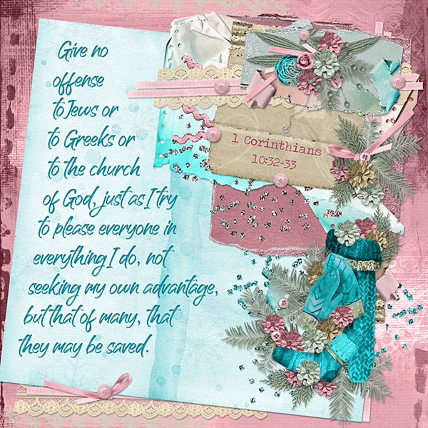 Give no offense to Jews or to Greeks or to the church of God, just as I try to please everyone in everything I do, not seeking my own advantage, but that of many, that they may be saved. 1 Corinthians 10:32-33