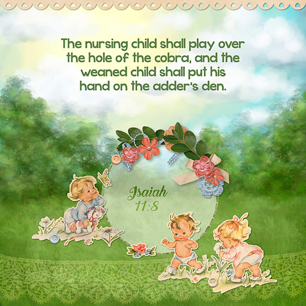 The nursing child shall play over the hole of the cobra, and the weaned child shall put his hand on the adder’s den. Isaiah 11:8