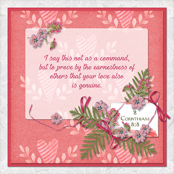 I say this not as a command, but to prove by the earnestness of others that your love also is genuine. 2 Corinthians 8:8
