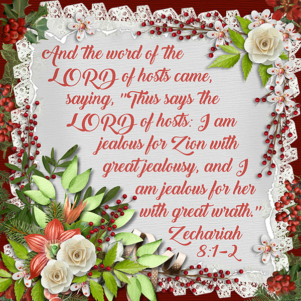 And the word of the LORD of hosts came, saying, “Thus says the LORD of hosts: I am jealous for Zion with great jealousy, and I am jealous for her with great wrath.” Zechariah 8:1-2
