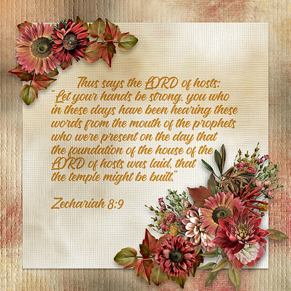 Thus says the LORD of hosts: “Let your hands be strong, you who in these days have been hearing these words from the mouth of the prophets who were present on the day that the foundation of the house of the LORD of hosts was laid, that the temple might be built.” Zechariah 8:9