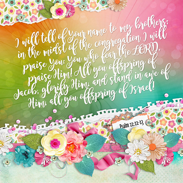 I will tell of Your name to my brothers; in the midst of the congregation I will praise You: You who fear the LORD, praise Him! All you offspring of Jacob, glorify Him, and stand in awe of Him, all you offspring of Israel! Psalm 22:22-23