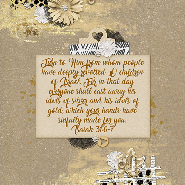 Turn to Him from whom people have deeply revolted, O children of Israel. For in that day everyone shall cast away his idols of silver and his idols of gold, which your hands have sinfully made for you. Isaiah 31:6-7