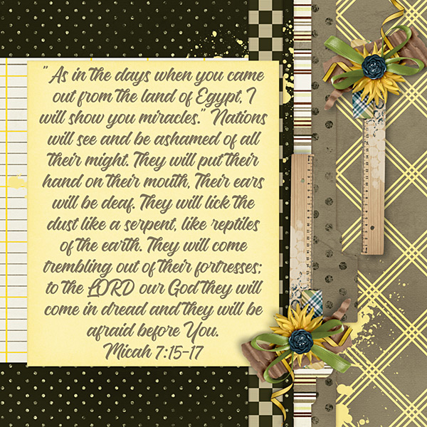 “As in the days when you came out from the land of Egypt, I will show you miracles.” Nations will see and be ashamed of all their might. They will put their hand on their mouth, Their ears will be deaf. They will lick the dust like a serpent, like reptiles of the earth. They will come trembling out of their fortresses; to the LORD our God they will come in dread and they will be afraid before You. Micah 7:15-17