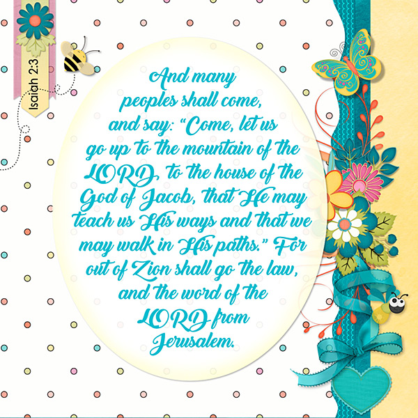 And many peoples shall come, and say: “Come, let us go up to the mountain of the LORD, to the house of the God of Jacob, that He may teach us His ways and that we may walk in His paths.” For out of Zion shall go the law, and the word of the LORD from Jerusalem. Isaiah 2:3