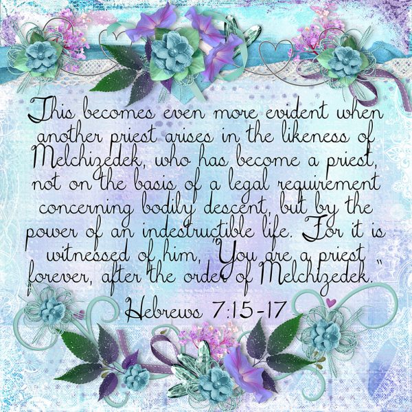 This becomes even more evident when another priest arises in the likeness of Melchizedek, who has become a priest, not on the basis of a legal requirement concerning bodily descent, but by the power of an indestructible life. For it is witnessed of him, “You are a priest forever, after the order of Melchizedek.” Hebrews 7:15-17
