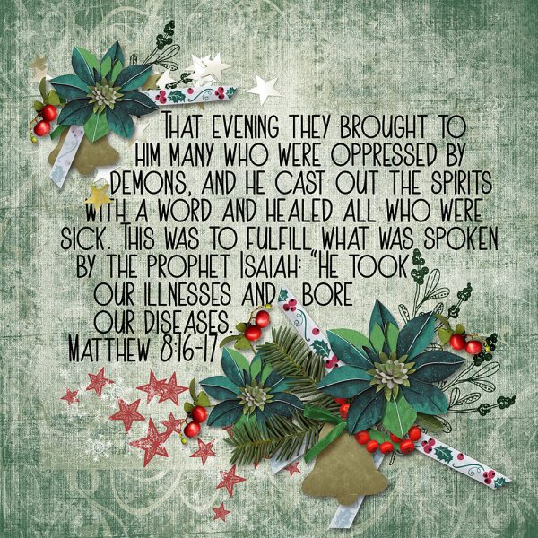 That evening they brought to him many who were oppressed by demons, and he cast out the spirits with a word and healed all who were sick. This was to fulfill what was spoken by the prophet Isaiah: “He took our illnesses and bore our diseases.” Matthew 8:16-17