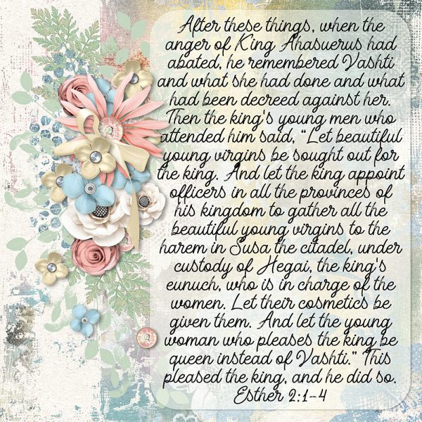 After these things, when the anger of King Ahasuerus had abated, he remembered Vashti and what she had done and what had been decreed against her. Then the king’s young men who attended him said, “Let beautiful young virgins be sought out for the king. And let the king appoint officers in all the provinces of his kingdom to gather all the beautiful young virgins to the harem in Susa the citadel, under custody of Hegai, the king’s eunuch, who is in charge of the women. Let their cosmetics be given them. And let the young woman who pleases the king be queen instead of Vashti.” This pleased the king, and he did so. Esther 2:1-4