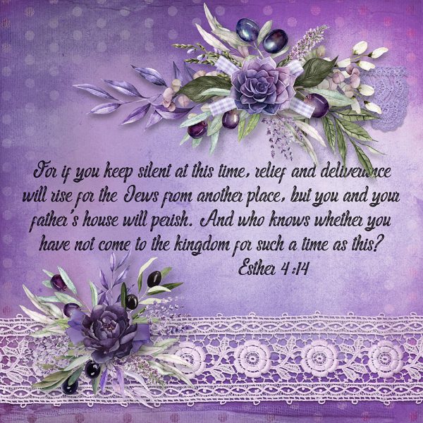 For if you keep silent at this time, relief and deliverance will rise for the Jews from another place, but you and your father’s house will perish. And who knows whether you have not come to the kingdom for such a time as this?” Esther 4:14