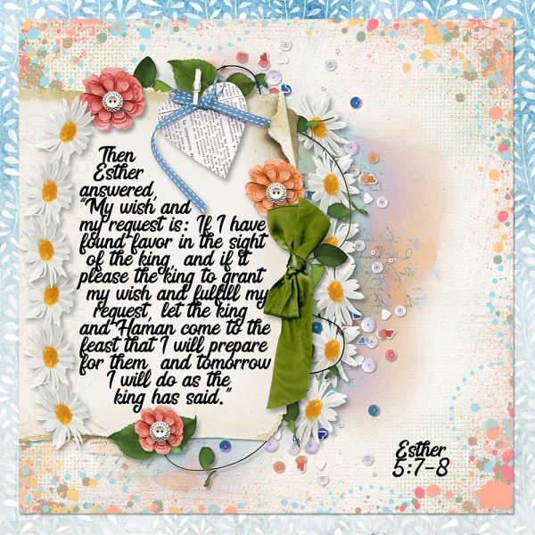 Then Esther answered, “My wish and my request is: If I have found favor in the sight of the king, and if it please the king to grant my wish and fulfill my request, let the king and Haman come to the feast that I will prepare for them, and tomorrow I will do as the king has said.” Esther 5:7-8