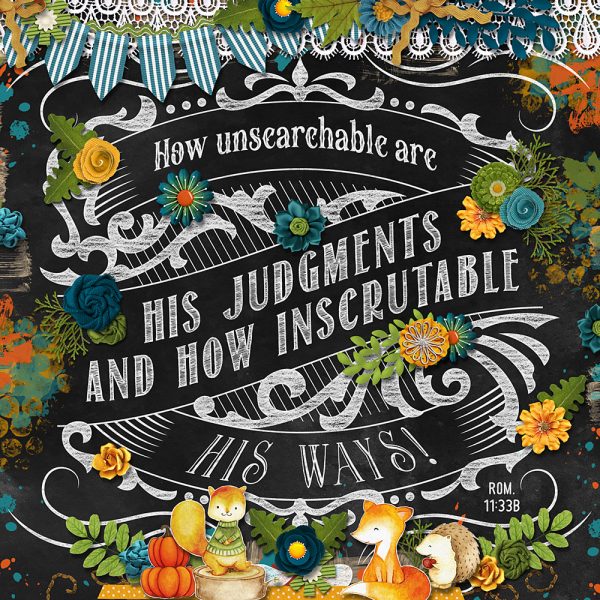 How unsearchable are His judgments and how inscrutable His ways! Romans 11:33b