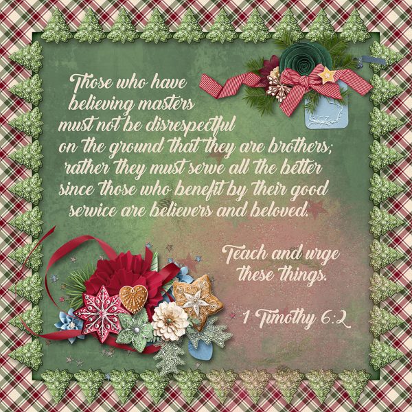Those who have believing masters must not be disrespectful on the ground that they are brothers; rather they must serve all the better since those who benefit by their good service are believers and beloved. Teach and urge these things. 1 Timothy 6:2